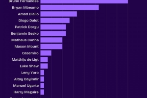 體育資訊10月31日訊 數(shù)據(jù)機(jī)構(gòu)squakwa統(tǒng)計(jì)了本賽季曼聯(lián)隊(duì)內(nèi)英超創(chuàng)造機(jī)會情況,B費(fèi)仍獨(dú)自領(lǐng)跑。