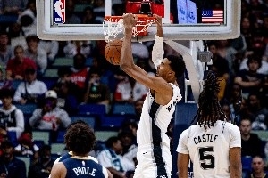 在文班的帶領(lǐng)下,馬刺目前5勝0負(fù)排名西部第2。在籃板和蓋帽上,文班目前都是聯(lián)盟第一。