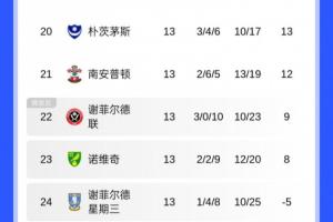 體育資訊11月02日訊 英冠目前已經(jīng)進(jìn)行了13輪,目前蘭帕德執(zhí)教的考文垂積28分,領(lǐng)跑積分榜。