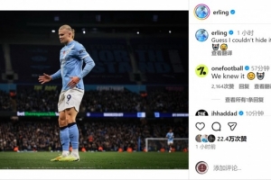下一篇: 伯恩茅斯中場:哈蘭德威脅巨大,針對他準備防守策略幾乎不可能