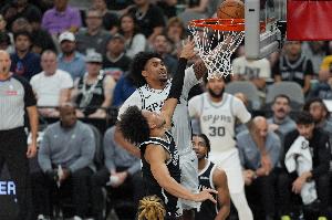 馬刺榜眼秀哈珀因左小腿受傷,在第二節(jié)時傷退。