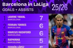 體育資訊11月3日訊 據(jù)Squawka統(tǒng)計(jì),巴薩本賽季5名球員聯(lián)賽參與進(jìn)球5+,五大聯(lián)賽首隊(duì)。