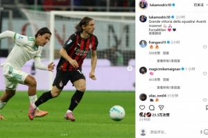 本場比賽40歲莫德里奇首發(fā)打滿全場,他也在社媒曬出本場與迪巴拉對抗照片,配文寫道:“團隊取得偉大勝利!讓我們攜手前進!加油米蘭!”