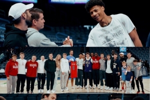 在本場(chǎng)比賽賽前,他大學(xué)隊(duì)友們都來到了雷霆主場(chǎng)為他加油。費(fèi)爾斯大學(xué)效力于俄克拉荷馬大學(xué),雖然大學(xué)和雷霆隊(duì)不是在一個(gè)城市,但距離非常近,俄城也算是費(fèi)爾斯的半個(gè)主場(chǎng)。