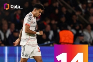 據(jù)Opta統(tǒng)計,迪亞斯已在歐冠打進(jìn)14球,追平杰克遜-馬丁內(nèi)斯,并列成為歐冠歷史進(jìn)球最多的哥倫比亞球員。