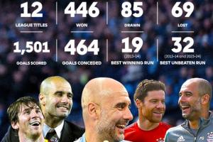瓜迪奧拉執(zhí)教生涯600場(chǎng)聯(lián)賽紀(jì)錄↓