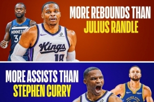 威少目前場(chǎng)均得分高于小薩(15.0>14.5)、場(chǎng)均籃板高于蘭德?tīng)?(7.1>6.9)、助攻比庫(kù)里多(5.6>4.3)