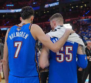 上半場,國王外線優(yōu)勢明顯,比雷霆多命中6記三分,但面對雷霆雙塔辦法不多,內(nèi)線得分14-36凈負22分。