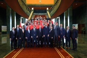 體育資訊9月16日訊 土耳其總統(tǒng)埃爾多安在總統(tǒng)府會見了獲得男籃歐錦賽銀牌的土耳其男籃國家隊,以及籃協(xié)相關(guān)人員。