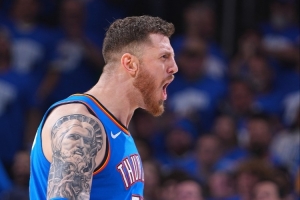 根據(jù)數(shù)據(jù)統(tǒng)計,此戰(zhàn)之后,哈滕成為了雷霆隊史上第一個以至少75%命中率砍下至少30+15的球員。