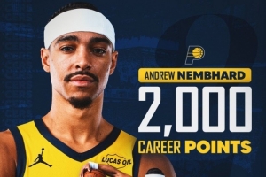 至此,內姆哈德常規(guī)賽生涯總得分突破2000大關。