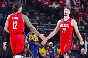 記者:“和亞當(dāng)斯一起打球你有多享受?”