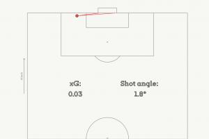 迪亞斯底線極限救球后,絲滑過(guò)人,小角度勁射死角。這里進(jìn)球的預(yù)期進(jìn)球(xG)僅0.03,射門(mén)角度1.8°。