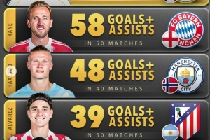 體育資訊11月10日訊 數(shù)據(jù)網(wǎng)站Score90盤點(diǎn)了2025年五大聯(lián)賽前鋒球員,在各項(xiàng)賽事(俱樂(lè)部+國(guó)家隊(duì))參與進(jìn)球榜,其中姆巴佩62球居首,以下為具體情況(進(jìn)球+助攻):