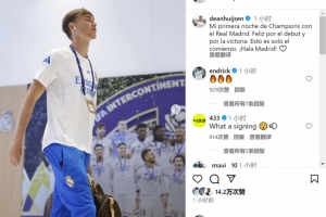 此役赫伊森為皇馬踢滿全場(chǎng),賽后他在社交媒體上寫道:“我在皇馬經(jīng)歷的首個(gè)歐冠之夜,為首秀和勝利感到高興,這只是開始,Hala Madrid!”