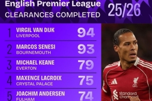 體育資訊11月11日訊 英超聯(lián)賽已經(jīng)進行了11輪,squakwa也統(tǒng)計了本賽季英超解圍次數(shù),范戴克力壓塞內(nèi)西居首。