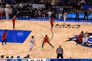 魔術(shù)110-109領(lǐng)先開(kāi)拓者1分,班凱羅運(yùn)球,格蘭特遲遲不犯規(guī),足足耗了10秒,開(kāi)拓者主教練斯普利特非常生氣。