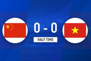 上半場(chǎng)比賽結(jié)束,U22國(guó)足0-0越南U22。