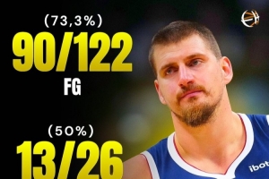 體育資訊11月13日訊 過(guò)去八場(chǎng)比賽,約基奇場(chǎng)均得到28.5分13.1籃板11.1助攻,命中率73.2%,三分命中率50%,罰球命中率85%。