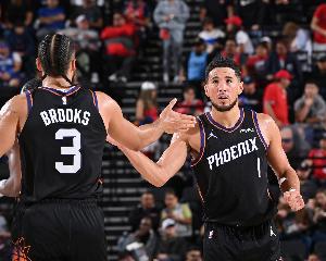 本場比賽,布克出戰(zhàn)29分鐘,轟下33分5籃板7助攻的數(shù)據(jù);狄龍·布魯克斯出場28分鐘拿下32分1籃板1搶斷。