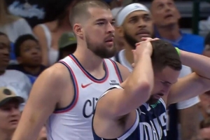 GIF-祖巴茨搶斷一條龍上籃 給克萊打抱頭了