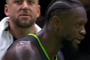 比賽最后時刻,威少壓哨籃板達(dá)成三雙,蘭德爾轉(zhuǎn)頭對迪文說:“He got a Westbrook triple double(他拿了一個威少式的三雙。).”