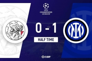 上半場傷停補時3分鐘,半場結(jié)束,國米暫1-0阿賈克斯。