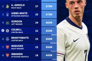 體育資訊11月17日訊 德轉盤點了缺席本期英格蘭名單球員身價榜,具體如下: