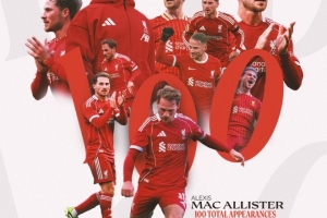 麥卡利斯特迎來利物浦生涯百場里程碑之戰(zhàn),此前99場比賽,阿根廷人打進14球并送出14次助攻。