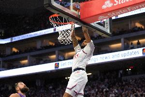 離場(chǎng)前,米勒出戰(zhàn)11分鐘,3中1,得到4分2籃板2助攻;瓊斯出戰(zhàn)10分59秒,5中2,三分2中1,得到5分1籃板2蓋帽。