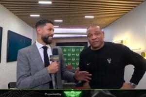體育資訊11月18日訊 今日對(duì)陣騎士的賽前,奧斯汀·里弗斯作為記者采訪了自己的爸爸、雄鹿主帥道格·里弗斯。