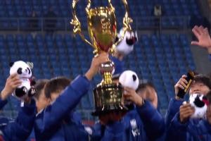 體育資訊11月18日訊 熊貓杯頒獎典禮,2勝1負的韓國隊捧起冠軍獎杯,中國隊1勝1平1負收獲亞軍銀盤。
