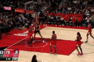 GIF-楊瀚森這球沒(méi)拿穩(wěn)啊……再起被帽
