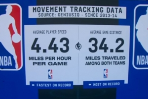 球員每場平均奔跑速度4.43英里/小時、球隊場均跑動34.2英里