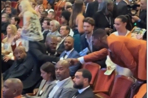 結(jié)束中國行返美的勒布朗-詹姆斯也現(xiàn)身頒獎(jiǎng)禮,他在現(xiàn)場和波什握手寒暄致意。
