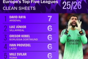 體育資訊11月21日訊 五大聯(lián)賽戰(zhàn)火即將重燃,數(shù)據(jù)機(jī)構(gòu)squakwa也統(tǒng)計(jì)了本賽季五大聯(lián)賽門(mén)將零封場(chǎng)次榜,槍手門(mén)將拉亞居首。