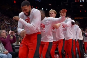 GIF-猛龍賽前儀式 排著長龍突然起舞