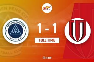 上半場(chǎng)比賽結(jié)束,深圳新鵬城1-1成都蓉城。