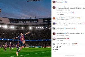 費(fèi)爾明也在賽后通過社媒曬出自己的激情慶祝照,并配文:“多么精彩的巴薩回家之戰(zhàn)!能在諾坎普球場出場并進(jìn)球,簡直像做夢一樣!感謝巴薩球迷的支持!”