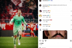 諾伊爾曬出自己的慶祝照,并配文:“偉大的逆轉(zhuǎn)!現(xiàn)在讓我們專(zhuān)注于周三的比賽!”