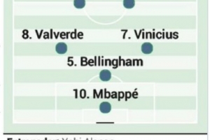 中場(chǎng)/邊鋒:居萊爾、卡馬文加、巴爾韋德、維尼修斯、貝林厄姆