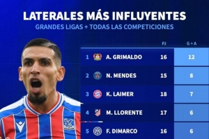 體育資訊11月25日訊 德國轉會市場統(tǒng)計了本賽季五大聯(lián)賽邊衛(wèi)的參與進球數量,并列出榜單,格里馬爾多參與12球居首,努諾·門德斯參與8球次席。
