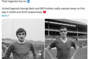 體育資訊11月25日訊 曼聯(lián)官方發(fā)文,紀(jì)念在11月25日離世的喬治·貝斯特以及比爾·??怂?。