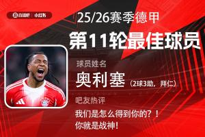 第十一輪評選結(jié)果結(jié)出爐,奧利塞2射3傳超神表現(xiàn),幫助拜仁讓2追6擊敗弗萊堡,獲得吧友超4.2萬票支持。奧利塞毫無懸念當(dāng)選【體育資訊X小紅書德甲第11輪最佳球員】!