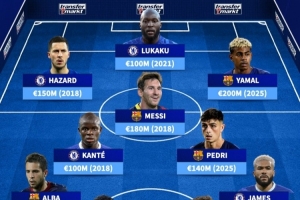 體育資訊11月26日訊 北京時間今晚凌晨4點,歐冠聯(lián)賽階段第5輪,切爾西主場迎戰(zhàn)巴薩。賽前,德轉評出這兩支球隊歷史最貴11人陣容,其中梅西、亞馬爾領銜鋒線,阿扎爾、盧卡庫在列。這套陣容的總身價達12.5億歐元。
