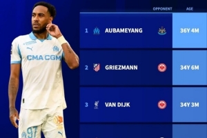 德轉(zhuǎn)統(tǒng)計(jì)表明,奧巴梅揚(yáng)成為本賽季歐冠年紀(jì)最大的進(jìn)球球員,今天他的具體年齡為36歲4個(gè)月。