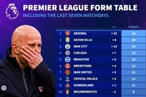 體育資訊11月27日訊 德轉(zhuǎn)列英超各隊(duì)最近7輪聯(lián)賽得分,阿森納19分居首,維拉、曼城列二三位。利物浦僅高于狼隊(duì),排在倒數(shù)第二。