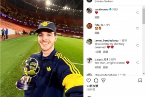 此役賴斯為阿森納踢滿全場(chǎng)表現(xiàn)出色,當(dāng)選全場(chǎng)最佳球員,賴斯社媒曬出手拿全場(chǎng)最佳獎(jiǎng)杯的照片,慶祝球隊(duì)取勝。