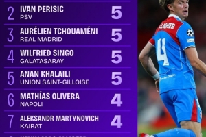 5次:加拉格爾(馬競)、佩里西奇(埃因霍溫)、瓊阿梅尼(皇馬)、辛格(加拉塔薩雷)、阿南-哈萊利(圣吉羅斯)