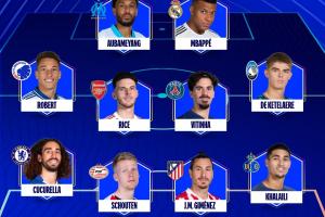 中場:羅伯特(哥本哈根)、賴斯(阿森納)、維蒂尼亞(巴黎圣日耳曼)、德凱特拉雷(亞特蘭大)